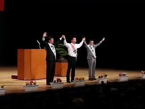 左から、金田みねお・参院兵庫選挙選挙区予定候補、私、田中耕太郎知事予定候補。