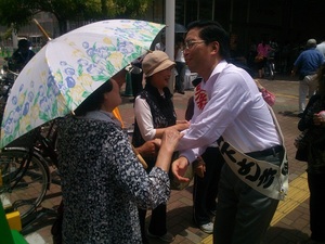 橋下大阪市長や松井大阪府知事ら維新の会が沖縄米軍の欠陥機オスプレイの訓練のー部を八尾空港に移そうとしている問題について、「住民の命と安全をないがしろにする勢力に審判を。痛みは移すのでなく取り除くのが政治の務め。アメリカいいなり政治にメスを入れよう」と訴えました。
