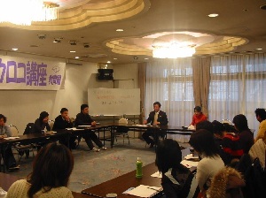きょうは、大阪の若い教職員の皆さんが取り組んでいる「目からウロコ講座」に招かれ、「『海外で戦争する国』にさせないために」と題して講演です。 まず日本国憲法の前文と9条をみんなで声を出して読んでから、@憲法改悪をめぐる情勢――危険性とともに阻止する可能性、条件に目をむける、A私たちの憲法論――世界の流れのなかで日本国憲法を考える、B国民多数派を結集するために――革新勢力だけの共同ではない、Cたたかいのもつ壮大な展望――日本を変え世界を変える、の順で80分間話をしました。 講演のあとは二手に分かれてグループ討論。「9条が世界の中で期待され評価されていることがわかってよかった」「選挙で自民党が勝って、アーっていうあきらめ感があったけど、世界の側に立っているのは私たち!あきらめたらアカン!って思った」「最後のところが心強かった。9条を守ったあと、日本と世界が変わる展望を語りたい」など、私が言いたかったことをばっちり受け止めてくれた感想が相次いでカンゲキ。 それと、教え子の中・高校生たちは、条文を知らなくても「9条って平和のことやろ?」「戦争はアカン」と思っていること、その背景にイラク戦争があることが出し合われたことも大事なポイント。ふだん授業を聞いていない女子高校生が、家庭科の授業で習った憲法24条(両性の平等規定)をノートに写して、「これホンマに正しい。これはそのまま私のことや。これいいと思う」と書き付けていたことも紹介され、憲法がもつ力、普遍的価値を再認識することもできました。