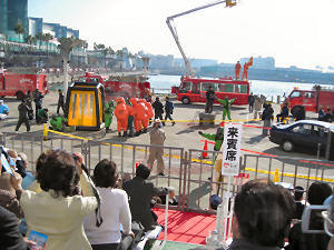 春を思わせるような暖かい朝、大阪市の消防出初式に参加。住之江区南港の埋立地に、消防車両50台、消防艇4隻、消防ヘリコプター4機、総参加人数1,400名が集まり、パレードや訓練を見せてくれました。