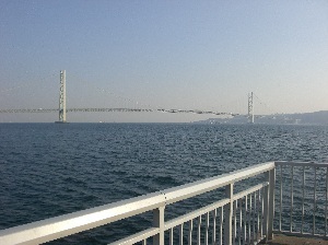 明石海峡は淡路島までの距離が4キロしかない日本有数の狭隘な海峡。わずかな間にも船がひっきりなしに行き来していました。